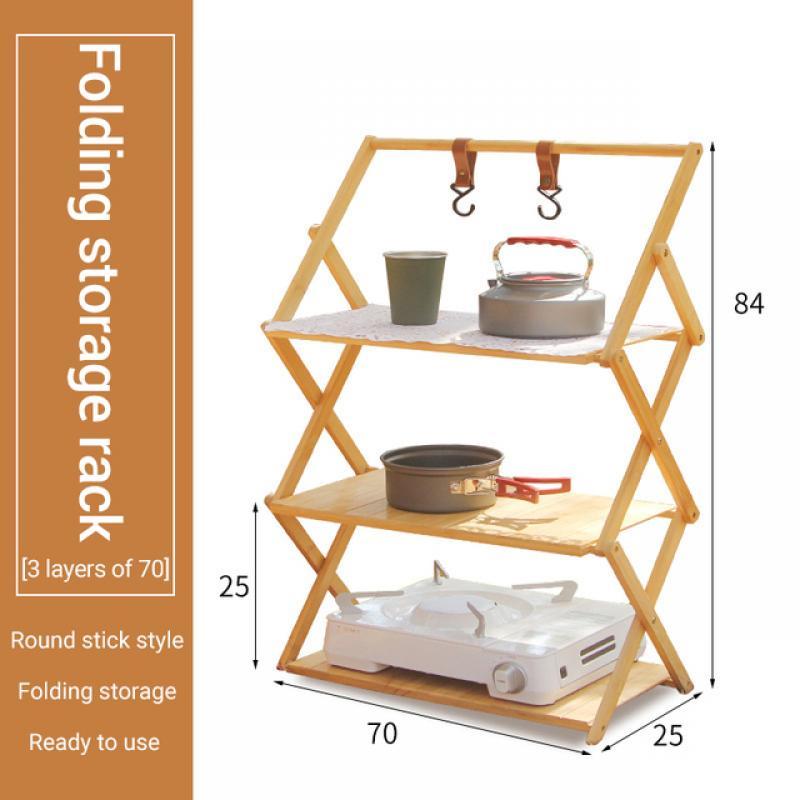 Outdoor Camping Shelf Rack Multifunctional Multi-layer Foldable Rack Portable Installation-free Bamboo Wood Storage Shoe Rack