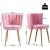 From the brand We're committed to providing premium quality to your life. Here, you can find what you are looking for. We're a family-owned supplier focusing on furniture-making and committed to premium products to your life. We're proud of our humble beginnings. For us, it's always been a reminder to treat people with kindness, to keep our eyes out for new ways to make people comfortable, and to deliver everything we make with a smile. Faux Sherpa Fur Accent Chairs Mid Century Modern Dining Set 31.5" Small Round Dining Table Table & Barstools Dining Room Chairs Product Description Pink Slat Back Upholstered Side Chairs with Wood-Look Metal Legs Want to add a chic atmosphere to your home? Try this set of chairs. This classic mid-century modern accent chair is upholstered with soft sherpa fabric and features a wide curved back combined with wood-look metal legs, natural and sturdy. Why We Love This Chic Sherpa Upholstered Side Chairs Ergonomic Design Made with fade-resistant, no pilling and soft fabric, this chic wide upholstered back is very comfortable to lean on. Comfortable Seat Filled with breathable, high density foam cushioning, it balances softness and durability, making any room r home more comfortable and inviting. Easy to Assemble Each box includes: 2 x Seat, 8 x Metal leg, 1 x Installation instruction, enough screws & tools. Easy to put it together within a short time Wood-Look Metal Legs Natural wood-look metal legs, using new carbon steel materials, through high-temperature baking paint process, sturdy, no noise at the bottom More Details That You Don't Want to Miss Give a touch of elegance to your dining room with these stylish sherpa accent chairs! Ergonomically shaped backrest and upholstered cushion provides maximum comfort to let you enjoy good meals with families. These accent chairs can be easily assembled in a short time, ideal for dining room, living room, bedroom, makeup, home office, waiting areas or cafes. Dining Chairs Accent Chairs Vanity Chairs