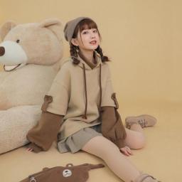 Harajuku Aesthetic Bear Anime Hoodie Women Korean Kawaii Crewneck Long Sleeve Oversized Streetwear Kpop Y2K Winter Clothes Tops