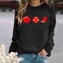 Sweatshirt Ladie Women's Tracksuit Hoodie Round Neck Sweatshirts Pullovers Lip Print Clothing Top Long Sleeve Casual Hooded