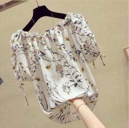 Summer New Shirt Women Temperament Slash Neck Stripe Chiffon Blouse Girl Loose Plus Size Lantern Sleeve Casual Fashion Top H9129