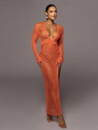Women Knitted Beach Cover Ups Crochet Cutout Backless Dress For Bikini Swimsuit Bathing Suit Summer Clothes