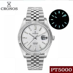 Cronos Date Luxury Men Dress Watch Stainless Steel 5 Links Bracelet Copper-Nickel Platinum PVD Bezel 100m Water Resistant