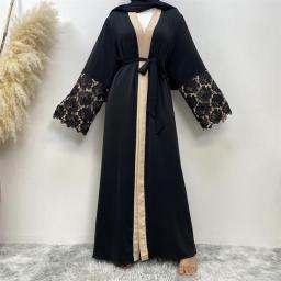Abayas For Women Muslim Fashion Dubai Tourism Dress Middle East Lace Panel Arab Robe Long Dresses