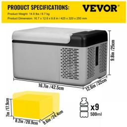 VEVOR 9L 15L Car Refrigerator Portable Compressor Fridge Freezer Cooler 12V/24V DC 110-240V AC For RV Travelling Camping Fishing