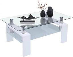 Comft Rectangle Side Glass Coffee Table, 2Tier Center Table Modern Black Side Coffee TableReception Room Office With Lower Shelf