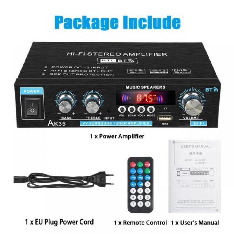 The power amplifier can be connected to mobile phones, computers, tablets, notebooks, MP3 players, televisions and projectors with AV audio (lotus socket) or 3.5mm headphone output holes, etc. All kinds of mobile phones on the market can be connected by Bluetooth, which can realize wireless playback.