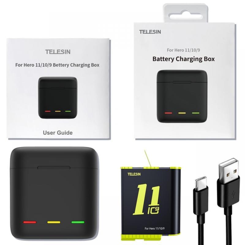 TELESIN For GoPro 9 10 11 Battery 1750 mAh 3 Ways LED Light Charger Box TF Card Battery Storage For GoPro Hero 9 10 11 Black Accessories