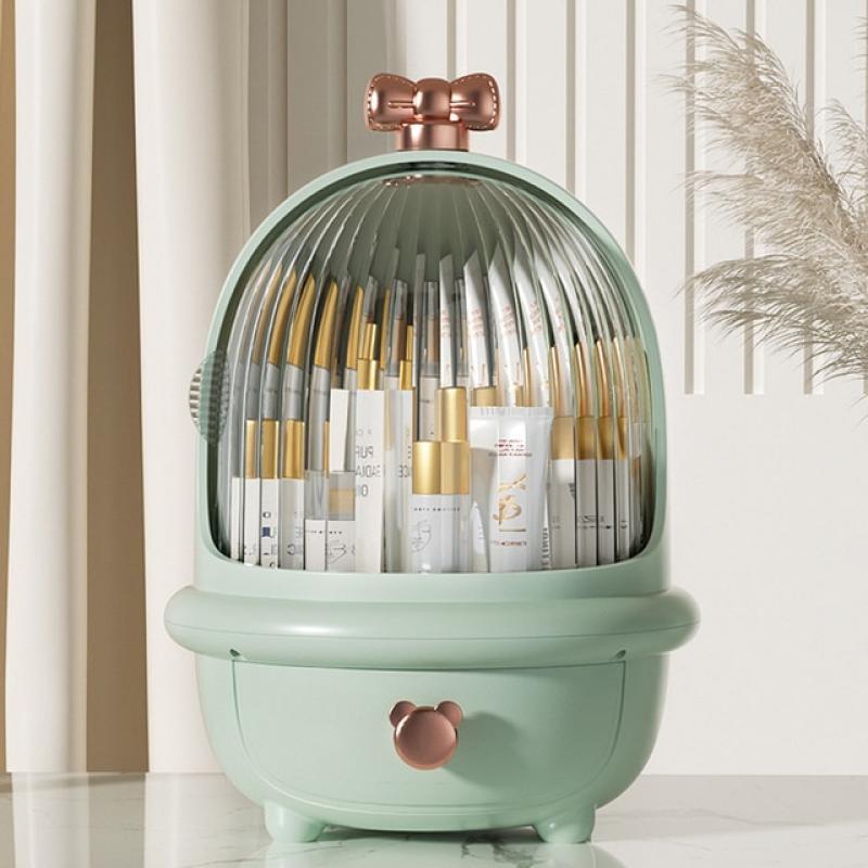 High Capacity Cosmetic Storage Box Dust Proof Storage Rack Desktop Jewelry Skin Care Products Storage Sorting Box White Green