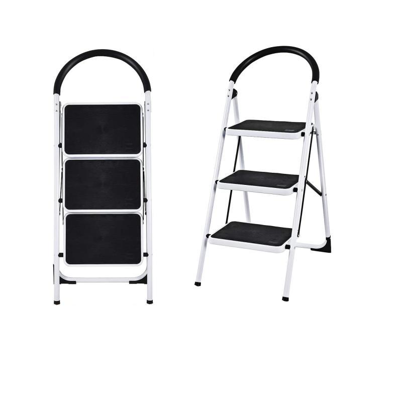 This is our foldable three steps ladder, which is ideal for any task around the kitchen, office, bathroom, and garage. Whether it's reaching a high cabinet, changing the light bulb or washing the windows, our products make it easier to get any job done. This lightweight step stool provides security to any job. The contemporary design fits for many of today's kitchens. There are four thick rubber pad on the bottom of four legs, provide safety when you using it, and the armrest also design for this aim. It will be very simple to storage and transport owing to its folding and lightweight features.