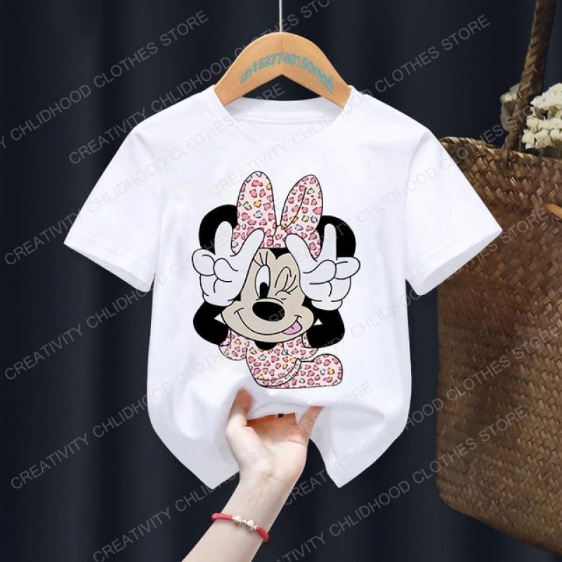 Minnie Children T-shirt Kawaii Disney T Shirt Floral Mickey Mouse Anime Cartoon Casual Clothes Kid Girl Boy Short Sleeve Top Tee