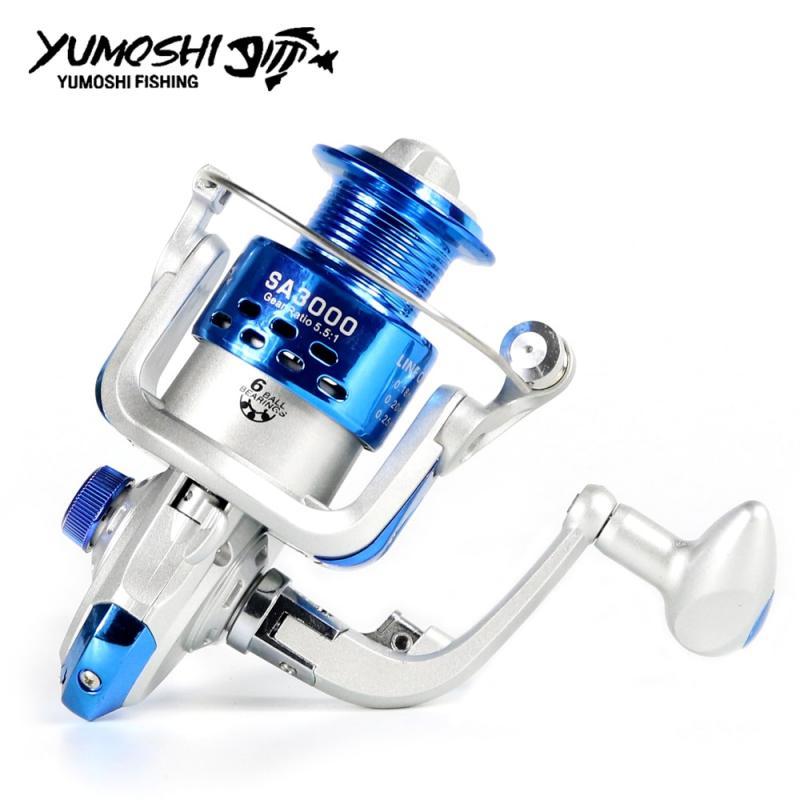 Yumoshi wheels fish spinning reel 5.5:1 12BB 1000-7000 series pesca carretilha peche Spinning wheel type Sea Rock lure fishing