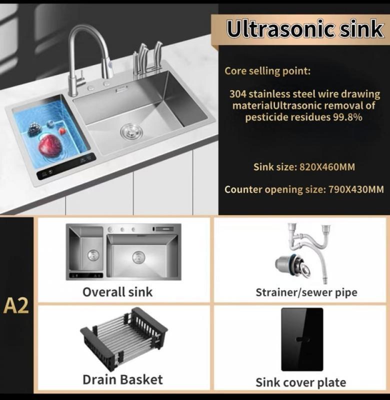 Ultrasonic Large Sink Multifunctional Table Board Kitchen Sink Stainless Steel Wash Basin Sink Smart Fruit and Vegetable Washer