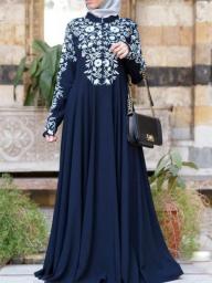 Orange Blue Pink Green Polyester Muslim Abaya for Women Summer Elegant Muslim Women Long Sleeve V-neck Polyester Long Abaya
