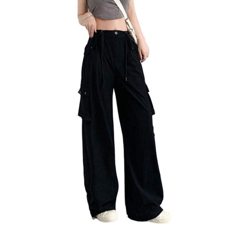 Features:Women Large Pockets Pants Cargo Trousers Loose Casual Pants Trousers