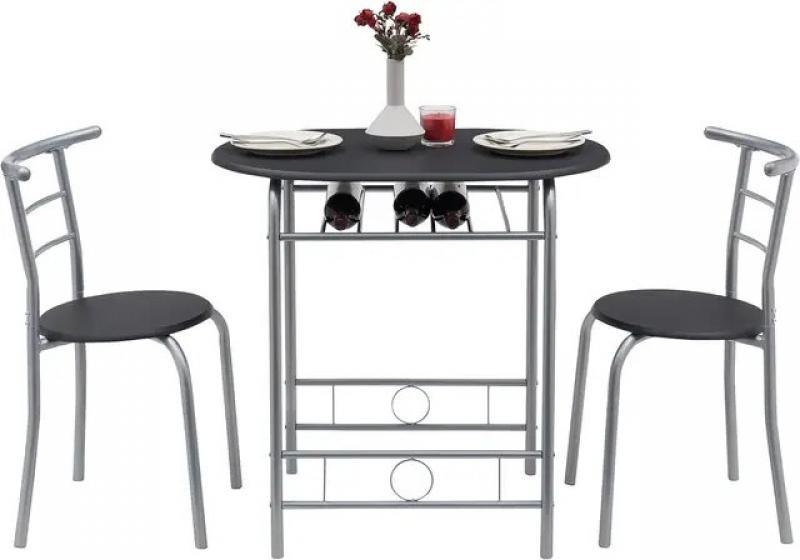 [WINE RACK BUILT-IN] - The table has an extra storage space that could be used as a wine rack, support up to 6 bottles or put baskets and other tableware. Metal tubes also make the structure of this kitchen table set more stable;