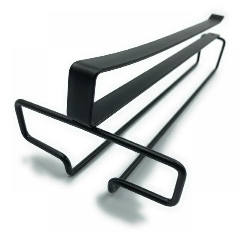 Easy free installation. Just slide the rack over the cabinet or shelf, no drilling.