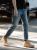 Women's Blue Denim Dress Y2K Trouser Leg Slits Washed Loose Casual Fashion Street Mid Waist Denim Trousers 2023 Ladies Pants
