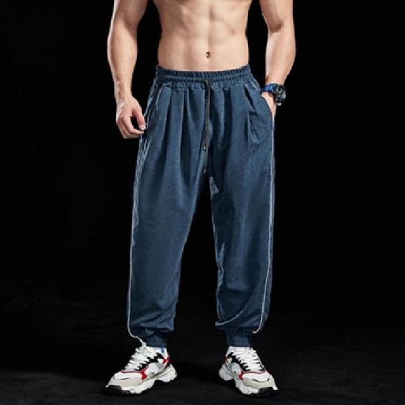 2021 Fitness Blockade Trousers Men's Leisure Fashion Sports Running Loose Trousers Muscle Men's Thin Breathable Bunch Trousers