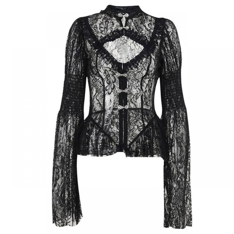 Lace Gothic Style Hollow Out Sweater Pullover Casual Loose Flare Sleeve Pullover Summer Drop Shoulder Lace Tops